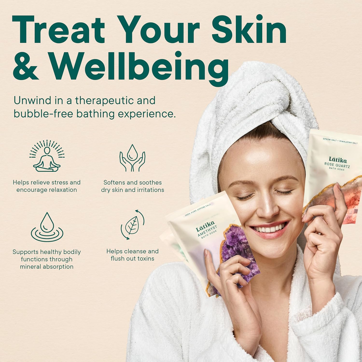 - QUICK DISSOLVE TECHNOLOGY – Our finely ground Epsom salts dissolve instantly in warm water, creating a seamless, no-residue bathing experience with every use.