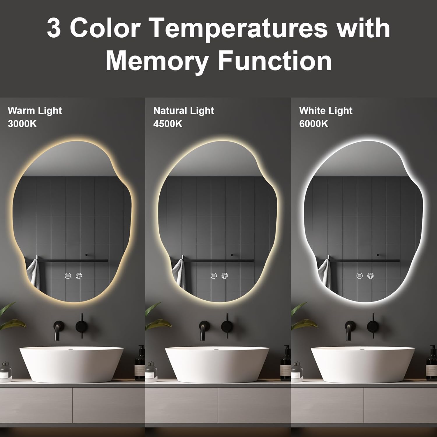 - Dimmable LED Light with 3 Color Temperatures: Choose from 3 color temperatures to suit your bathroom mood, with adjustable brightness via a touch sensor button for easy control.